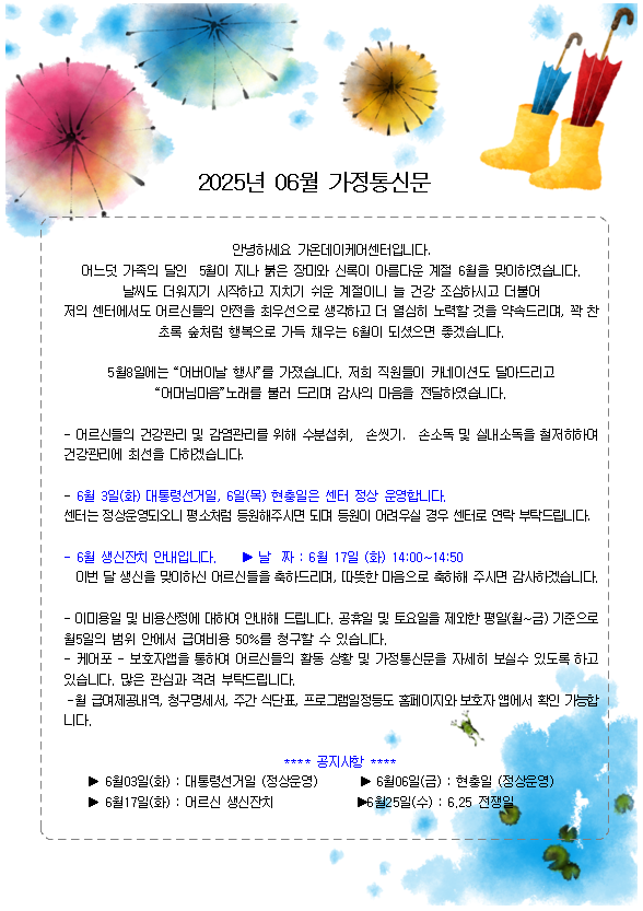 | 제목 | 붉은 장미와 신록이 아름다운 계절 6월을 맞이하였습니다.~^^ | 공지일 | 2025.06.01 |