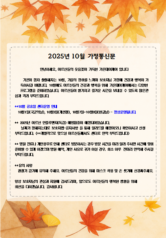 기온이 점차 쌀쌀해지는 10월 입니다~^^